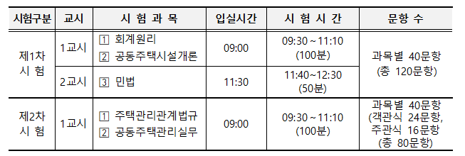 ※ 매 과목 40점 이상, 평균 60점 이상 합격