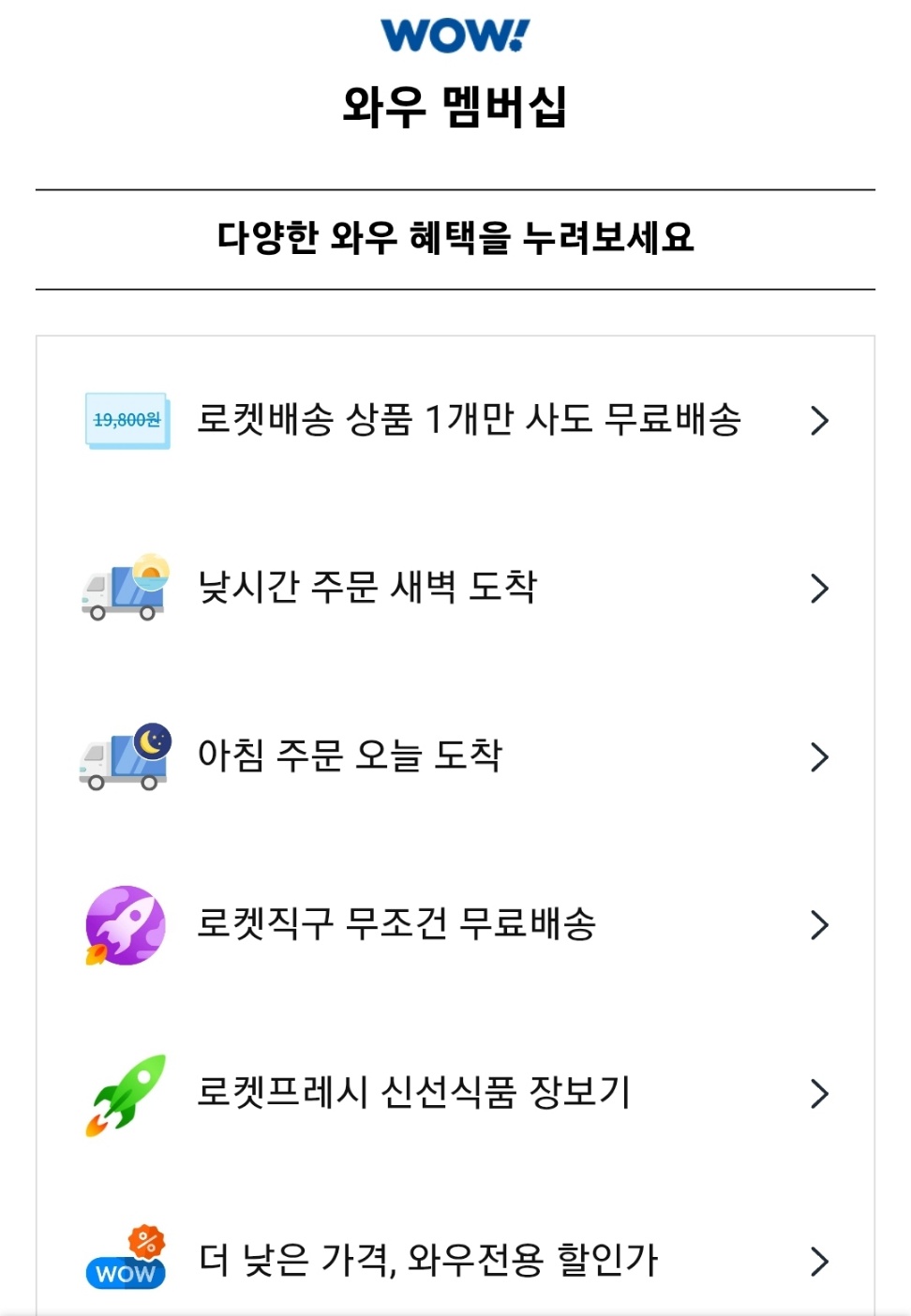 와우 멤버십 주요 혜택 정리