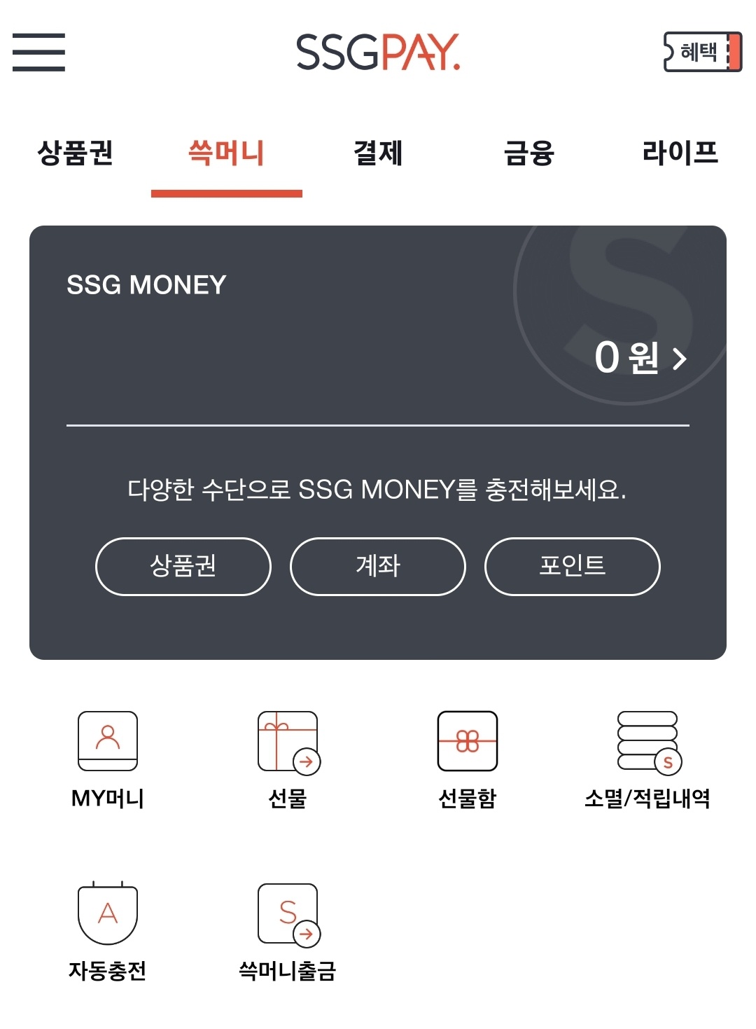 즉시 완료: 쓱머니로 충전되며 SSG.COM·이마트몰·신세계몰에서 즉시 사용 가능