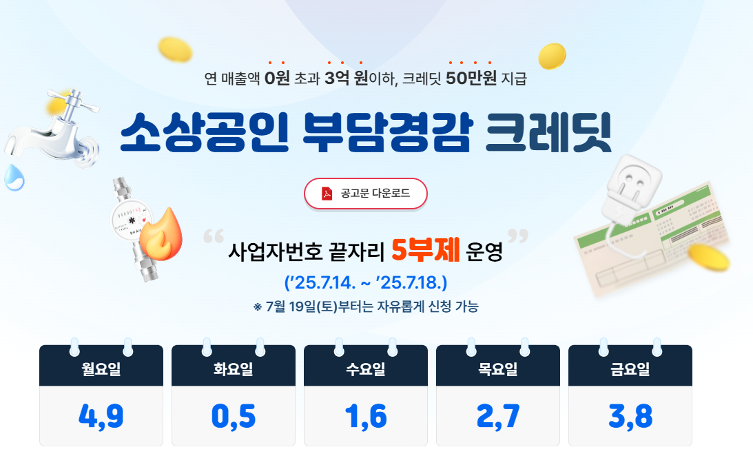 공과금·4대 보험료 등 고정비용 부담을 완화하고자 정부가 지원하는 정책금융 크레딧입니다
