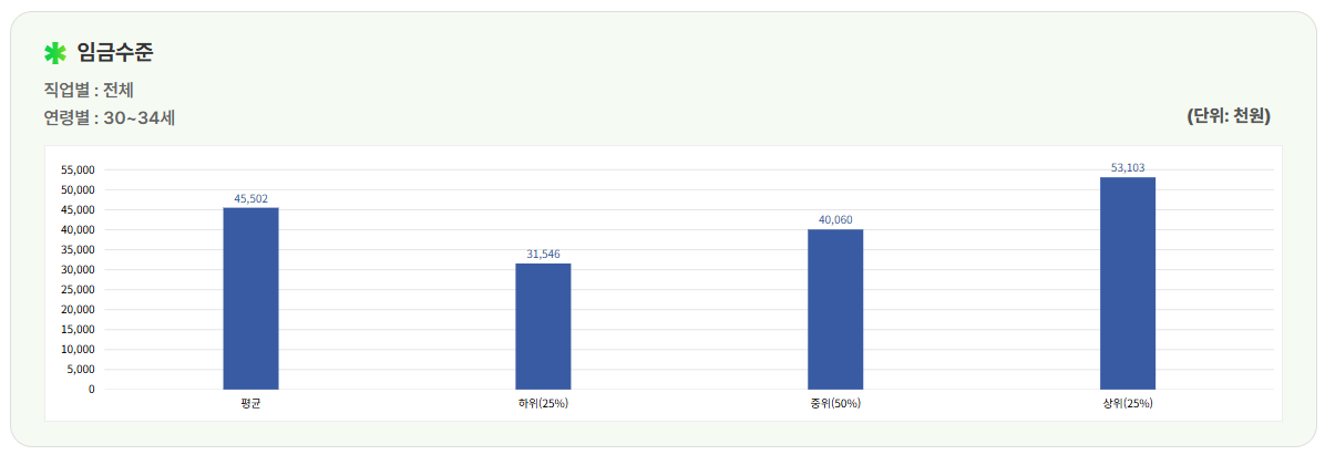 대한민국 공식 전자정부 누리집인 임금 직업 포털을 참고하면 이렇습니다.
