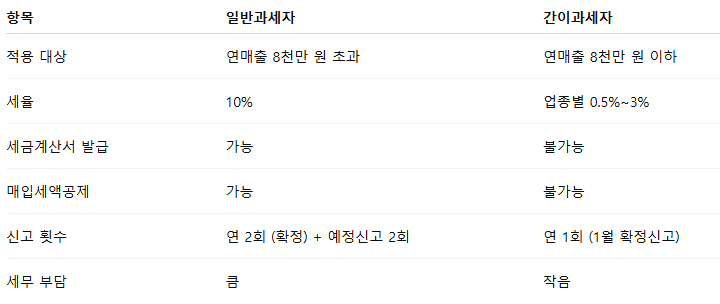 - 직전 연도 매출이 8천만 원을 넘으면 자동으로 일반과세자로 전환됩니다.