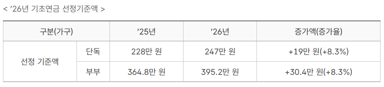 2025년 대비 기준, 인상으로 더 많은 어르신이 수급 가능해졌습니다.