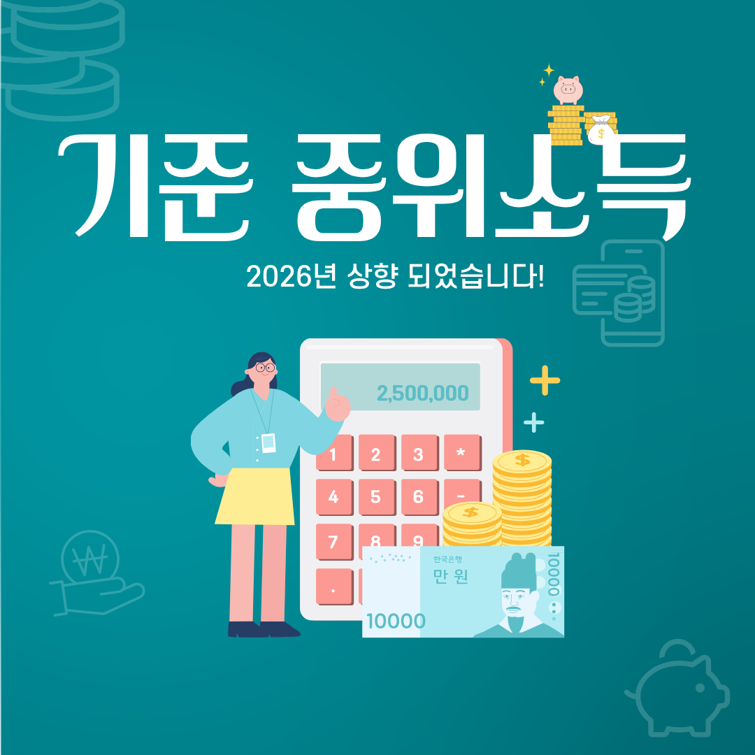 2026년 중위소득은 2025년 중위소득에 비해 큰 폭으로 상향되었습니다.