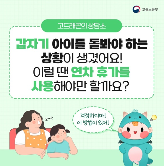 예를 들어 자녀가 갑자기 아프거나 부모님이 병원에 입원하신 경우, 하루 이틀이 급한 상황에 사용할 수 있어요.