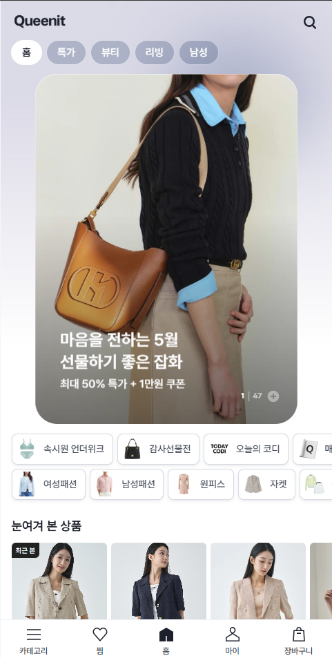 특징: 40대 여성 전용 패션 플랫폼, 빅사이즈 의류 전용은 아니지만 전 상품 무료배송